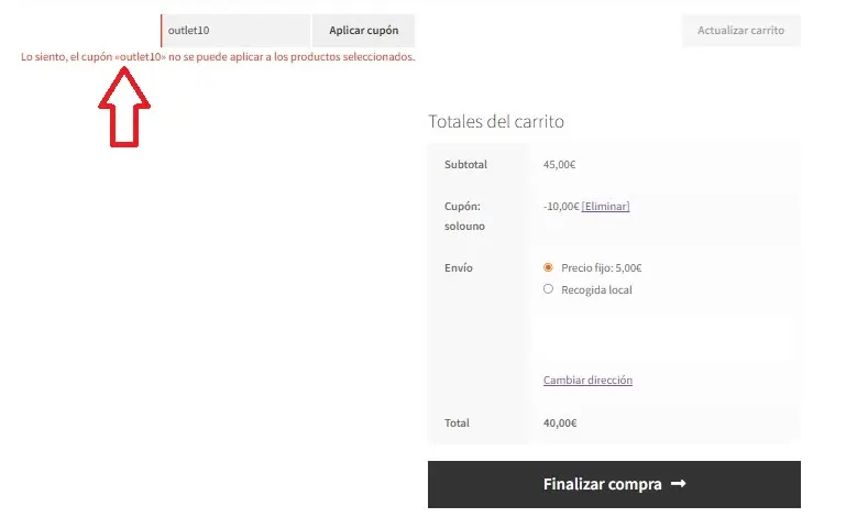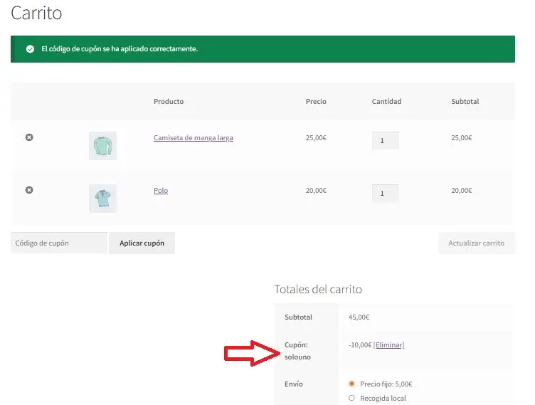 Esto hará que el pedido tenga 10 € de descuento, siempre que el cupón se aplique.