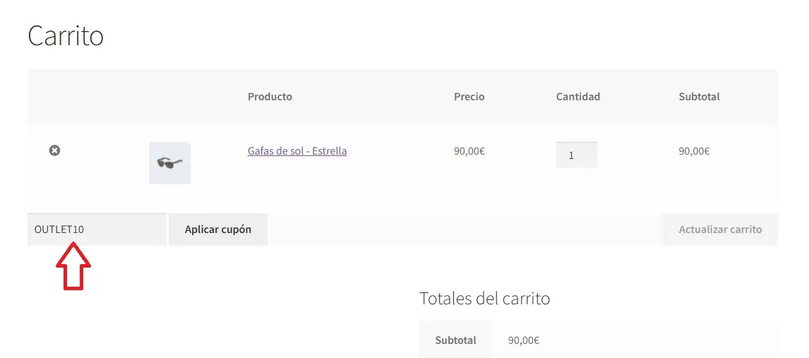 - Introduce el código del cupón y comprueba que el descuento se aplica