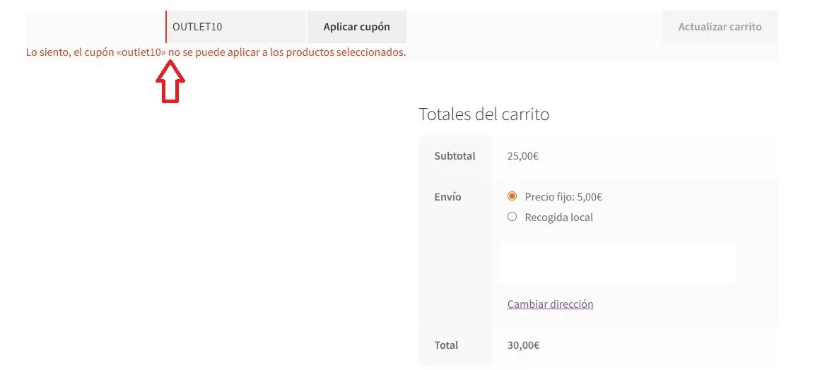 - si el carrito contiene productos de varias categorías, solo los de la categoría incluida se verán afectados por el cupón.
