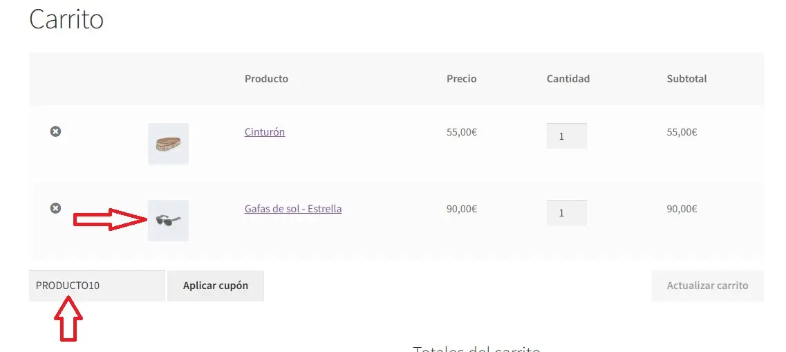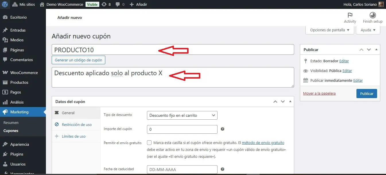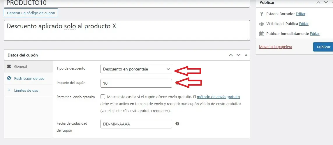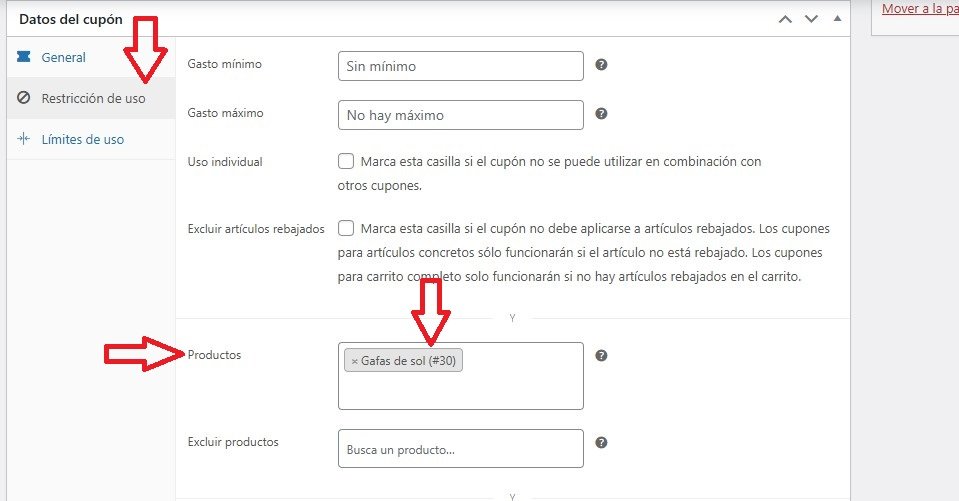 En este ejemplo solo hemos limitado el cupón a un producto concreto, lo que implica que: